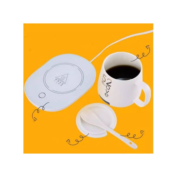 C'est la tasse idéale peut garder votre café, votre chocolat chaud ou, aussi, vos infusions de thé à la température la plus appropriée pour la consommation. Avec cette élégante tasse, vos moment chaleureux dureront plus longtemps, il suffit de brancher le coussin et positionner votre tasse en dessus. Conception sûre et pratique : la tasse élégante en céramique, accompagnée par une cuillère et un couvercle également en céramique, utilise une plaque chauffante en verre trempé avec un design étanche, afin d'obtenir la meilleure expérience de consommation de vos boisson chaudes durant les mois froids de l'hiver. C'est aussi le meilleur choix de cadeau pour anniversaire et autres occasions pour votre famille et vos amis durant ces mois d'hiver. Caractéristiques du produit- Puissance: 16W